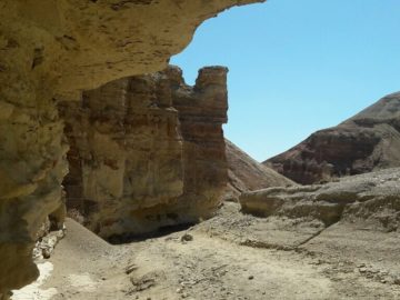 Удивительные по своей красоте Белые горы – это музей под открытым небом далекого прошлого нашей планеты. Горы сложены породами, имеющими разные цвета и оттенки от бледно-голубых до охристых, насыщенных цветов. В сухих руслах ущелья сверкают крупные кристаллы кальцита. Эти безжизненные склоны, состоящие из хрупких пород, причудливо изрезанные эрозией, настолько необыкновенны, что невозможно отвести глаз. Некоторые из гор напоминают по форме Египетские пирамиды. Белые глины – это самые поздние слои, образовавшиеся на дне древнего моря. Из них и сложена основная масса меловых гор. Наиболее популярным местом в горах Актау является Красное ущелье, склоны которого сложены породами красного и желтого цветов. По этому ущелью проходит русло высохшей реки, по которому очень удобно идти вглубь горного массива. Ущелье венчает красная гора, изрезанная глубокими промоинами и чем то напоминающая лапу огромного животного.