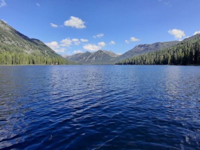 По дороге, со всех сторон окруженной густым лесом, мы доберемся до озера Язевое, посетив по пути одноименный водопад. В ясную погоду с берега озера можно увидеть царицу Алтайских гор – Белуху. Здесь мы отдохнем, желающие смогут порыбачить на Язя, обитающего в этом водоеме.