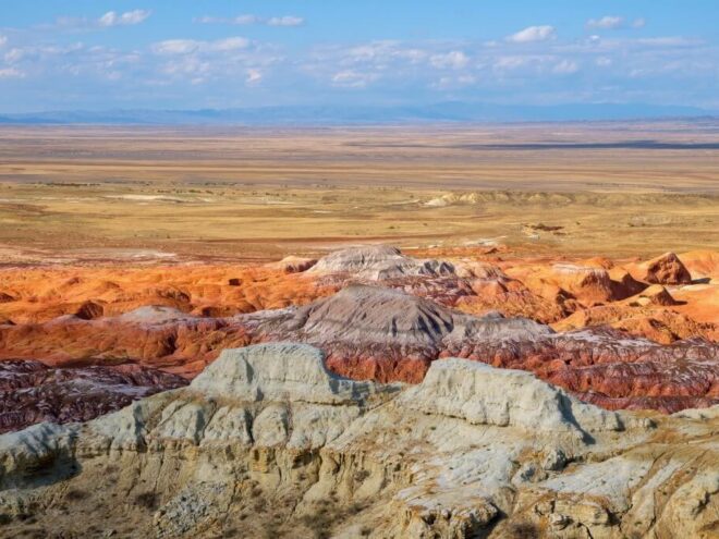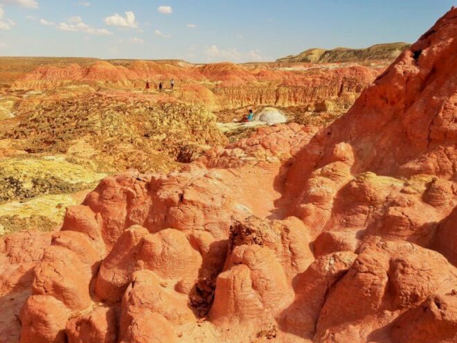 В этот день мы посетим одно из важнейших палеонтологических месторождений Евразийского континента – Киин-Кериш. Древние породы обнажили свою поверхность и дали ученым возможность исследовать флору и фауну мезозойского периода. Про это место ходит много легенд, о которых гид вам обязательно расскажет. Далее мы переедем в “Замок горных духов” – каньон Шекельмес. Он представляет собой глиняные и песчаные горы, омытые дождями и приобретшие разные причудливые формы.
