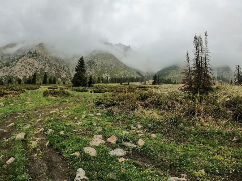 В ясный день кажется, что первоначальная грунтовая дорога не представляет особых трудностей. Но погода в горах Джунгарском Алатау переменчива и буквально за час могут набежать облака и пойти дождь или снег. Раскисшая глина и камни требуют от авто полного привода и добротной резины, а от водителя мастерства управления. Но это еще что, настоящий офф-роад ждет нас впереди сразу же после перевала «Капальский Извоз». Спустя полчаса движения мы окажемся на высокогорном джайлау (пастбище). Здесь в конце мая-начале июня можно увидеть бескрайние луга, украшенные полевыми цветами и разнотравьем. Тут же местные чабаны летом устанавливают юрты и выпасают домашний скот.
